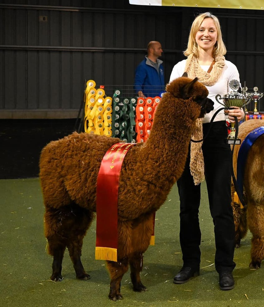 Pixie is a combination of AHL Peruvian Tru Highlander, which is one of Europes most influental males and Flanders Pia, the best producing Oregon daughter and an Athena Daughter. So Claudius, Oregon, Highlander all in one animal. Her Genotype is special as she can be bred to white and always gonna give color, despite not carrying a black gene.